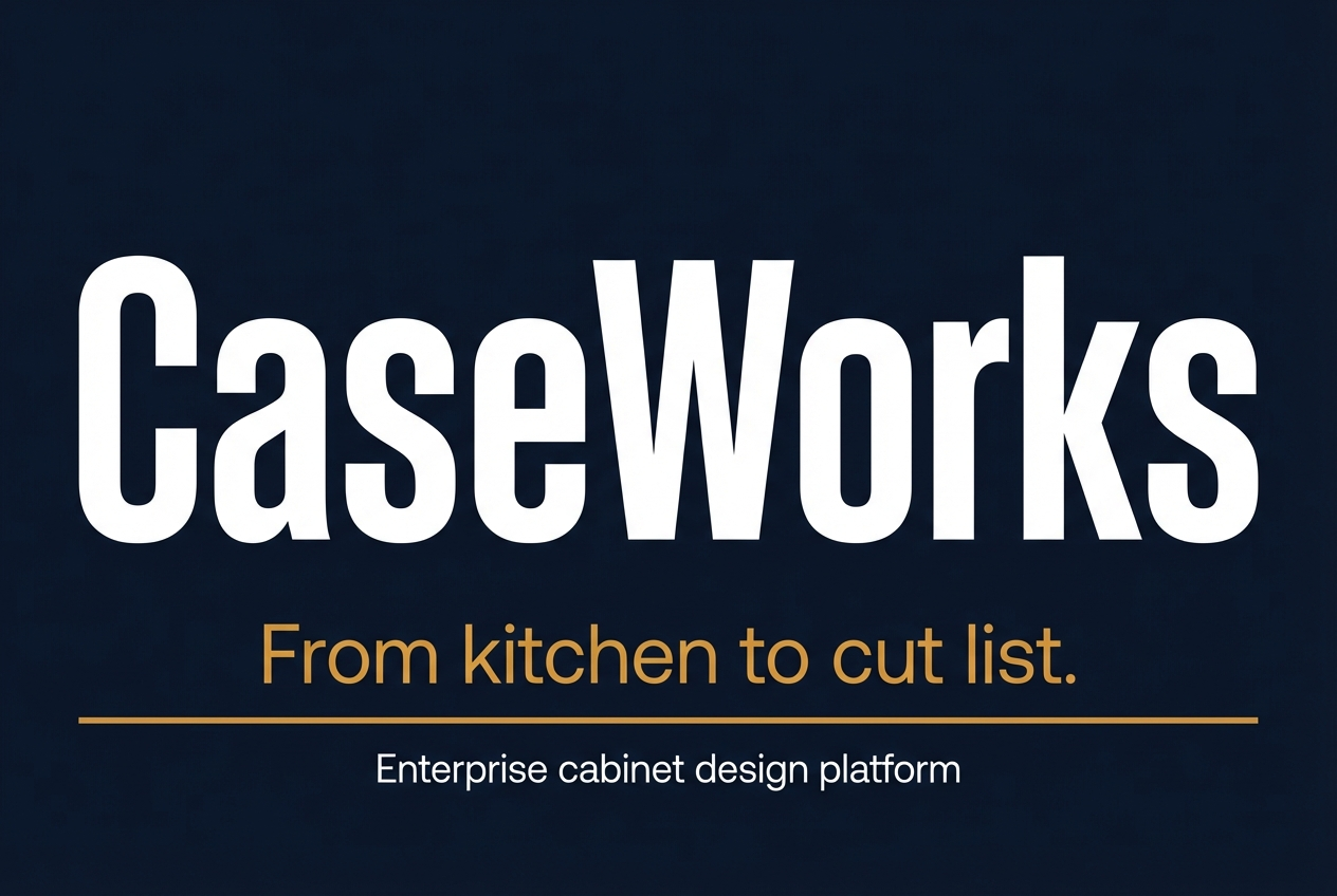 CaseWorks is a web-based cabinet design platform that lets your field team design on-site, show clients an AI rendering of their new kitchen, and send cut-ready data to the shop floor — from a browser.